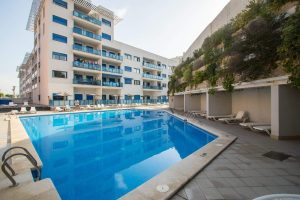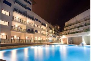 Es una urbanización cerrada con piscina comunitaria y parking.